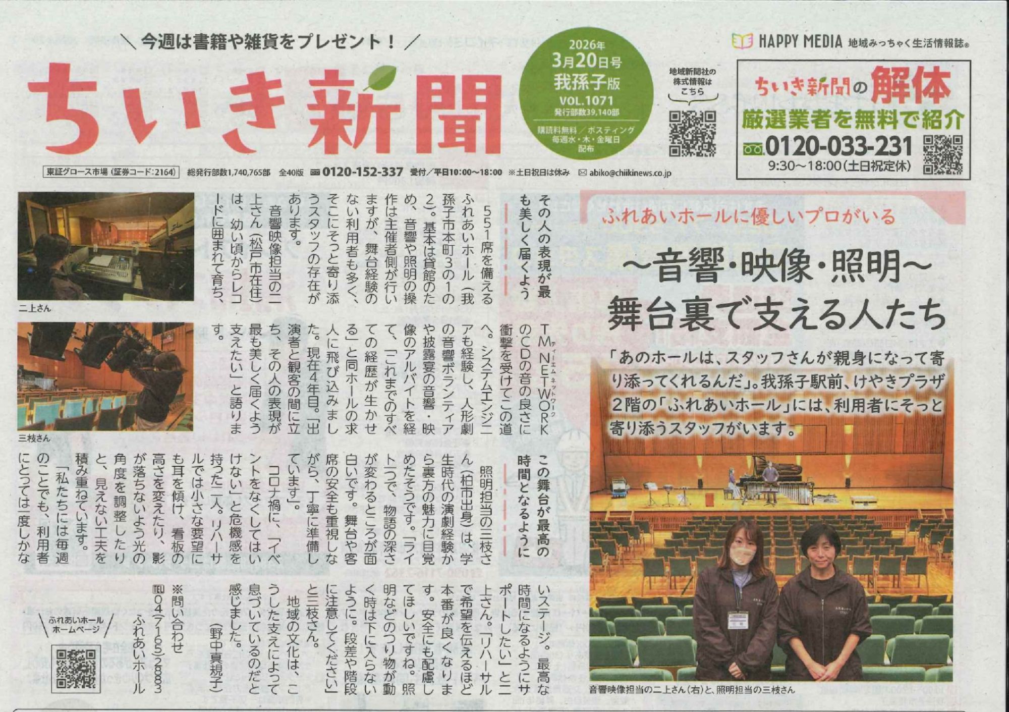 ふれあいホール技術スタッフが取材を受けました。